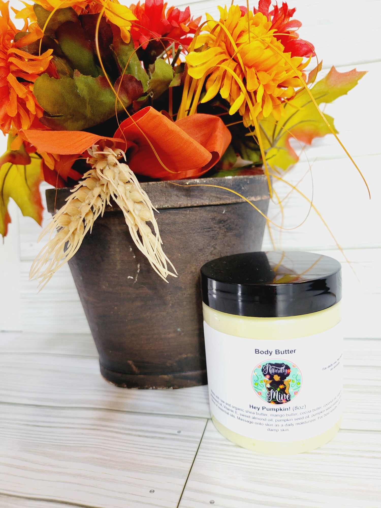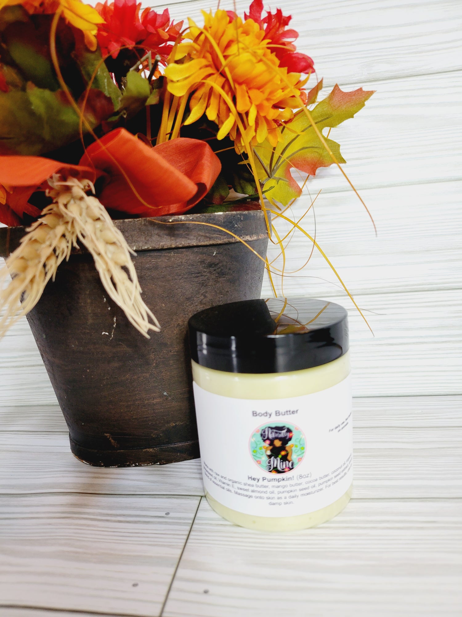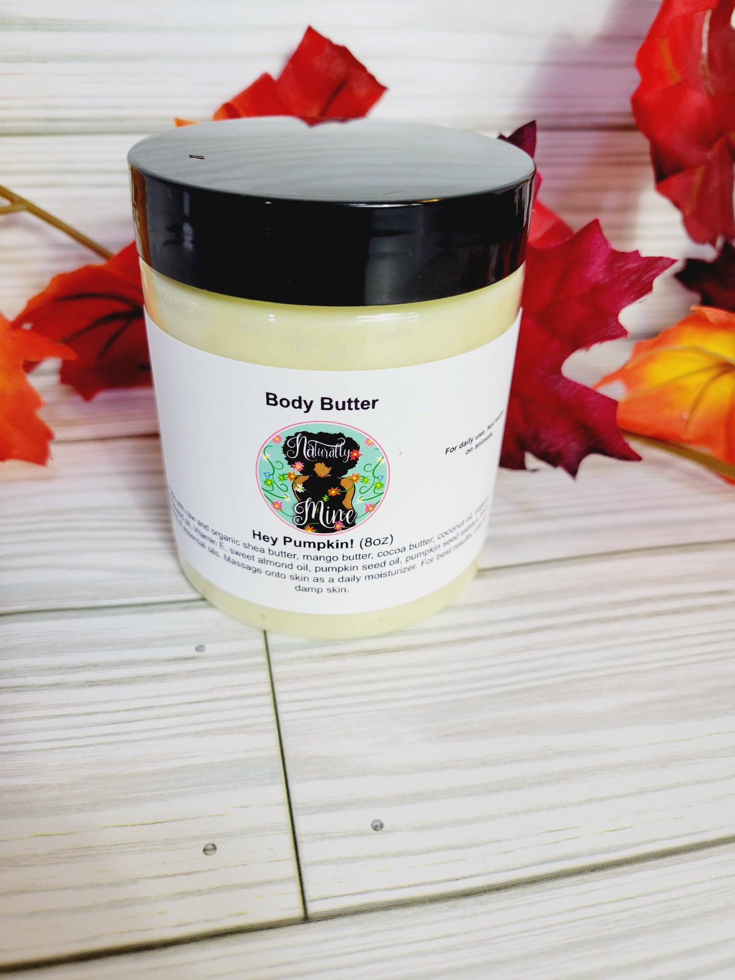 Made with raw and organic shea butter, mango butter, cocoa butter, coconut oil, organic grapeseed oil, Vitamin E, sweet almond oil, pumpkin seed oil, pumpkin seed extract, and a blend of essential oils.