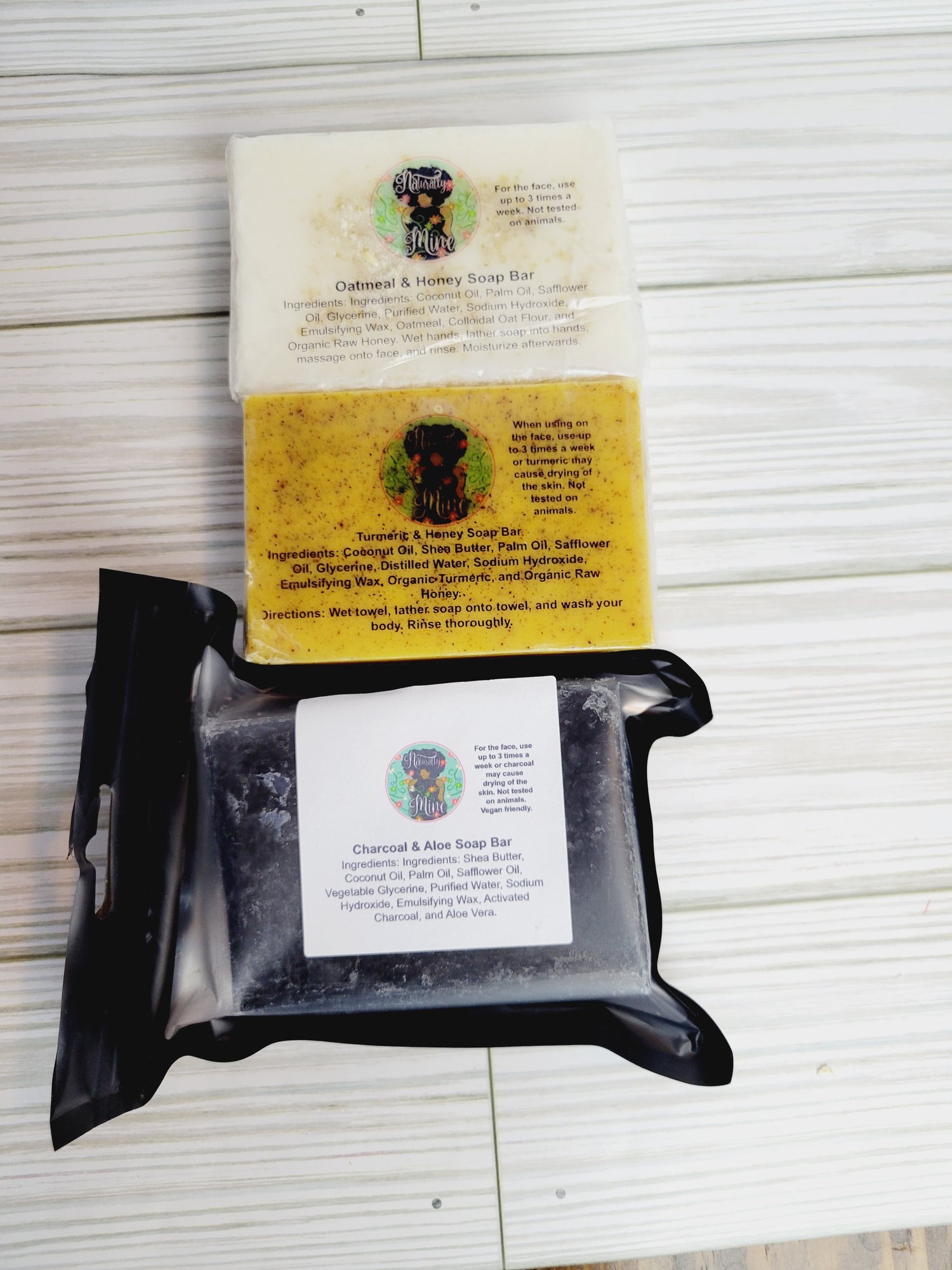 Ingredients: Coconut Oil, Shea Butter, Palm Oil, Safflower Oil, Glycerine, Purified Water, Sodium Hydroxide, Emulsifying Wax, Organic Turmeric, and Organic Raw Honey.